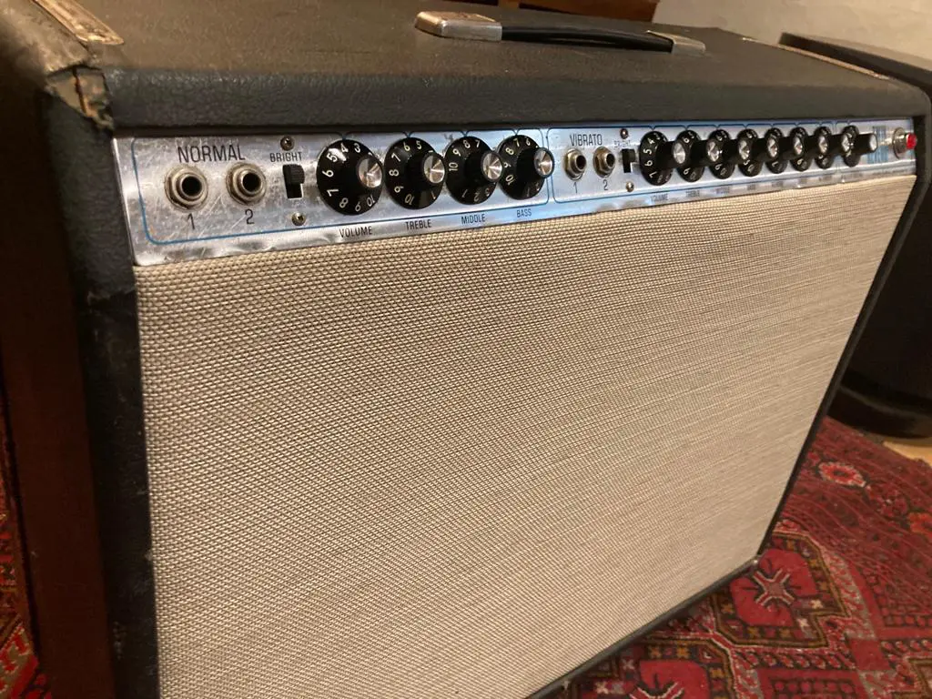 Dans son jus niveau cosmétique mais électroniquement entièrement refait. Recapage de tous les électrochimiques (vishay/ IC caps) et entièrement retubé (JJ + TubeTown). Nouveaux boutons (original Fender) et nouveau Footswitch RCA (original Fender). Ajout de ressorts pour les 6l6.