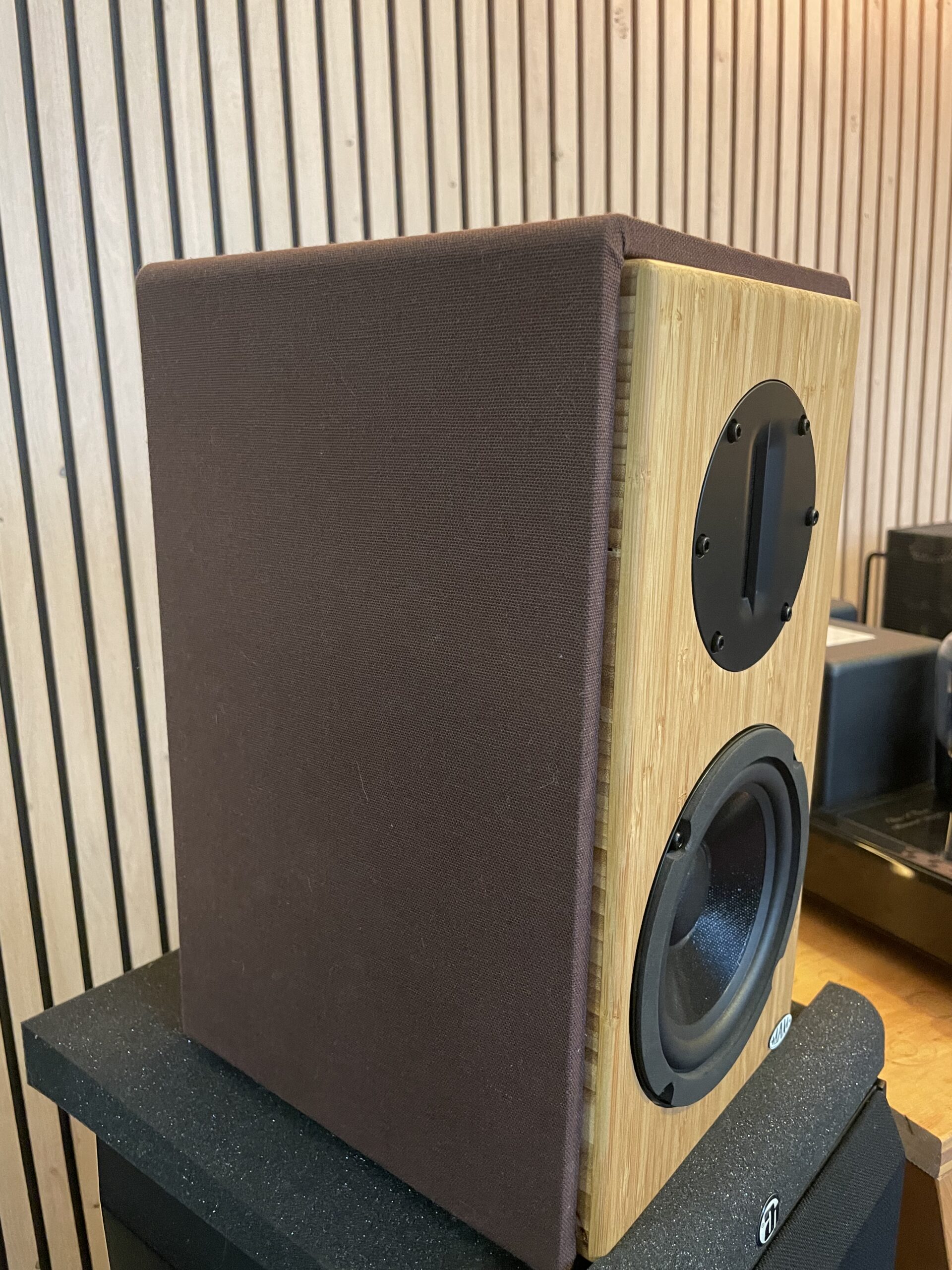 le placage en bambou naturel et du plus bel effet. et en plus d’être joli, ca sonne cannon. précision assurée par un joli twitter a ruban, et corp par un joli 10 cm et un event inférieur.