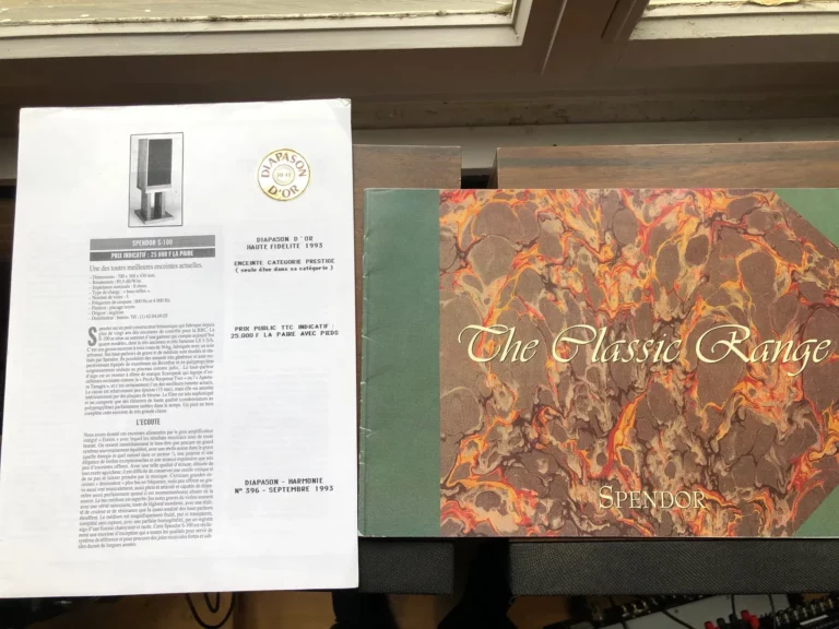 Magnifique paire de Spendor S100 de 1993. En parfait état, avec ses supports d’origine, diapason d’or 1993!