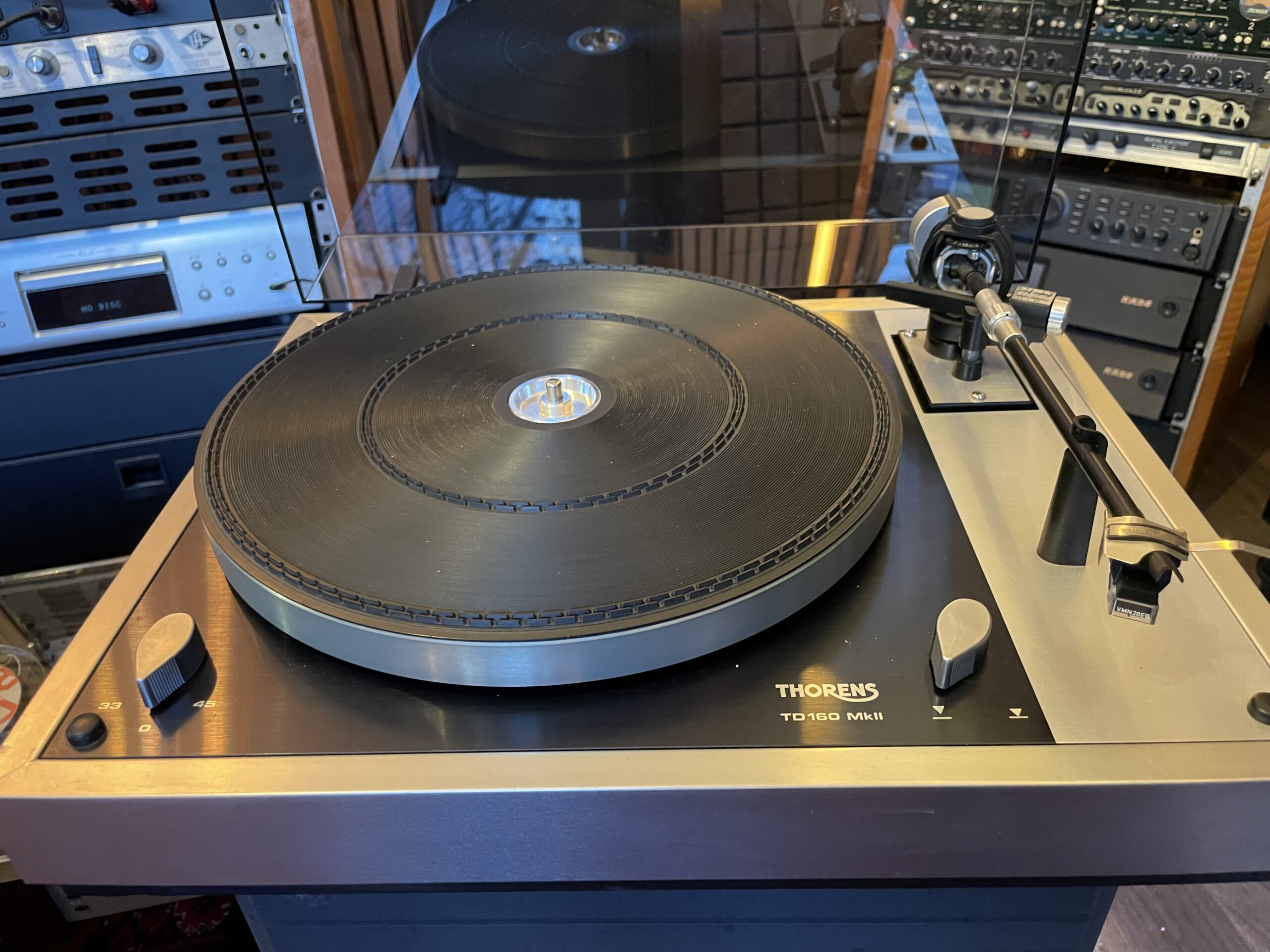 Thorens TD160 MKII entièrement restauré par nos soins. nouvelle courroie, nouveau câblage ( alim et Audio) nouveau capot fumé (possible transparent sur demande ) nouvelle cellule VM520 Audio technica