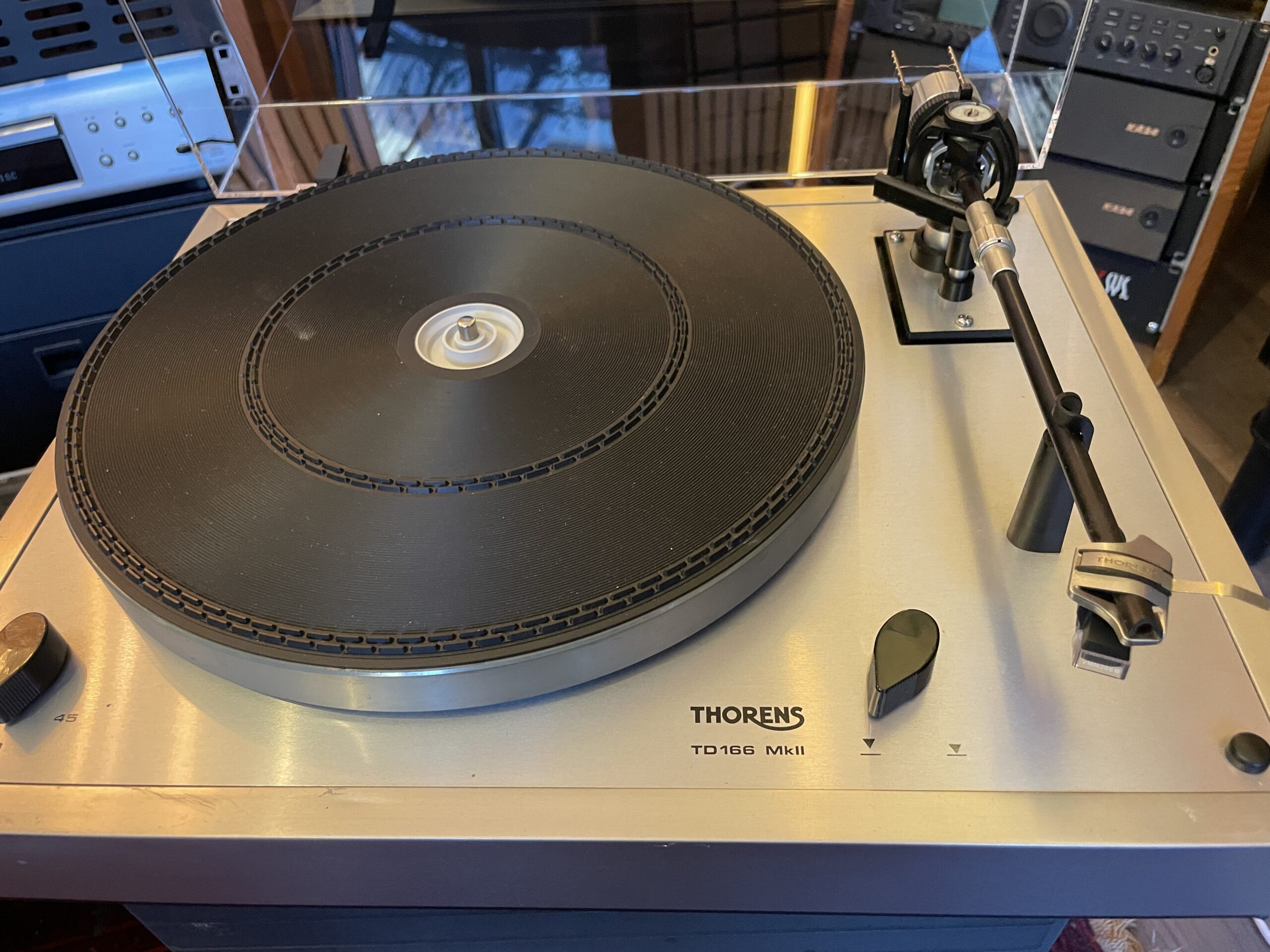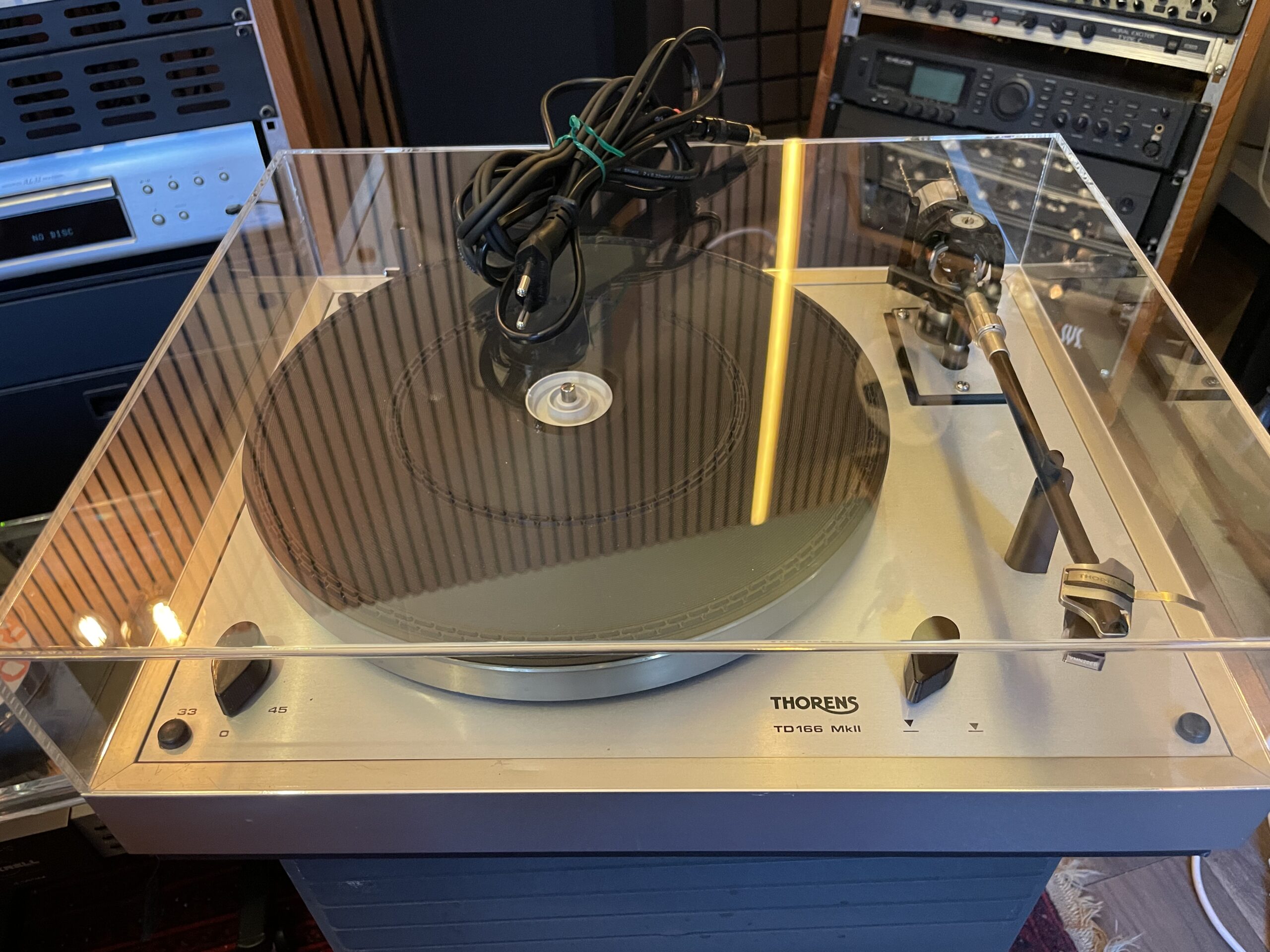 Superbe Thorens TD166MKII, entièrement refaite a l’atelier. nouvelle courroie, nouveaux cables ( alim et Audio) nouvelle cellule Audio technica VM520 EB, nouveaux capot fumé et nouvelles charnières en 3D