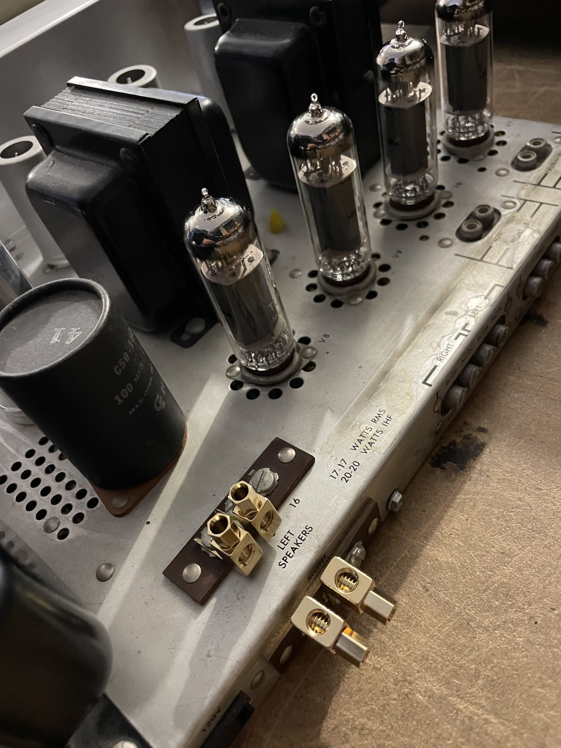 ce petit 2x 17w ravira les amateurs de son chaud vintage. possédant 3 entrées lignes et une entrée phono ( ceramic ou magnétique ) il s’intègreraient facilement dans n’importe quelle configuration. sortie HP 8 ou 16 Ohms. avec borniers Plaqué or.