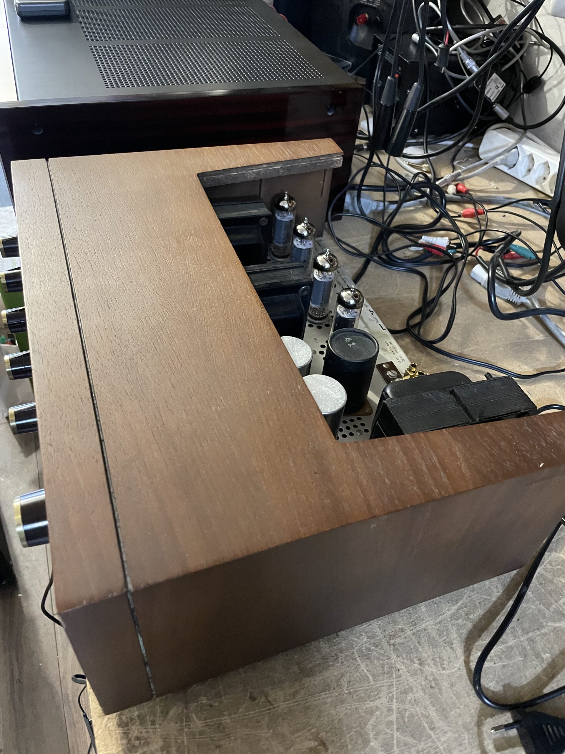 Le modèle présenté est de première main, en effet cet exemplaire m’a été acheté par mes parents le jour de mon anniversaire dans les années 65. Ce maillon faisant partie d’une chaîne composée d’une platine Thorens TD124 Mk1 toujours en activité et d’enceinte B&W que je n’ai plus et remplacée par la suite par une paire de Triangle Graphite, enceinte aillant un haut rendement. Au point de vue fonctionnement c’est le deuxième jeu de tubes que j’ai remplacé depuis lors et ceci par des Phillips pour l’ensemble sauf pour les 7247 par des GE et c’est tout à part un nettoyage de temps en temps.